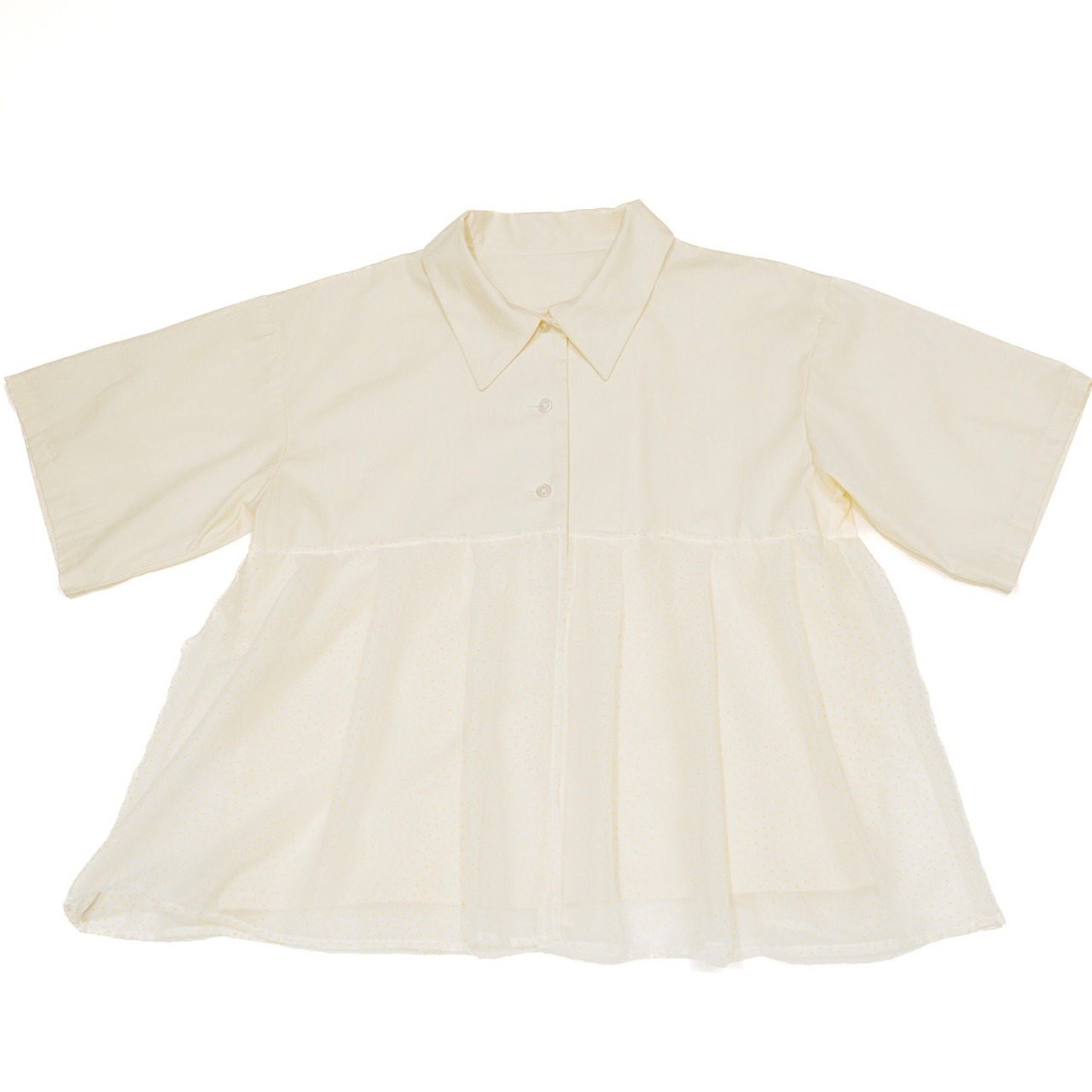 フリルの長さをシャツの丈に合わせ、フリルの着方をさまざまに楽しめるデザインにしました。